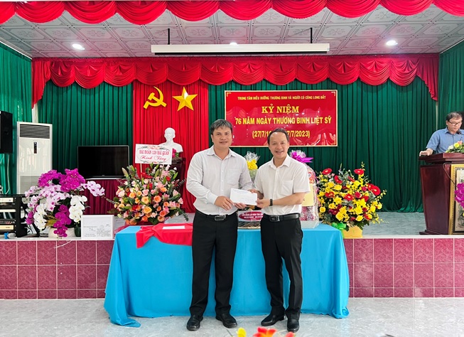 Ngày 26/7, Công đoàn Các Khu Công nghiệp tỉnh tổ đã tổ chức đến thăm hỏi, tặng quà tại Trung tâm Điều dưỡng Thương binh và Người có công Long Đất (huyện Long Đất, tỉnh Bà Rịa-Vũng Tàu).