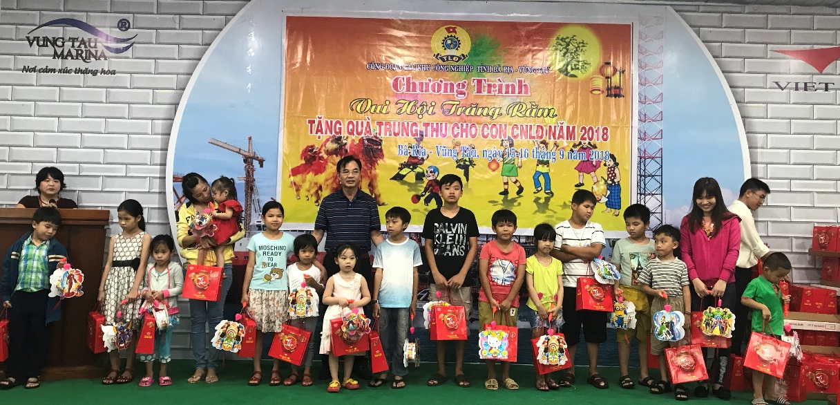 Và Trung thu lại về, trẻ em ở khắp nơi đều náo nức được cha mẹ sắm sửa cho quần áo đẹp, lồng đèn, bánh trung thu, …đi chơi cùng các bạn trong thời tiết mát mẻ, với ánh trăng và bầu không khí rộn rã với tiếng cười và đèn hoa rực rỡ. Hiểu được ý nghĩa đó, ngày 15 và 16.9.2018 Công đoàn các KCN tỉnh Bà Rịa Vũng Tàu đã tổ chức chương trìnhVui hội trăng rằm và tặng quà trung thu cho con của CNLĐ có hoàn cảnh khó khăn nhân dịp Tết trung thu 2018 tại 2 địa điểm Cơ quan Công đoàn các Khu công nghiệp và Vũng Tàu Marina ở Khu công nghiệp Đông Xuyên. Tham gia buổi trao quà có đại diện lãnh đạo Liên đoàn Lao động tỉnh BRVT là ông Nguyễn Văn Cường- Trưởng Ban Tuyên giáo và Nữ Công và hơn 900 em được nhận quà lần này. Buổi trao quà diễn ra rất vui tươi, mặc dù trong điều kiện thời tiết mưa to, gió lớn nhưng các em cũng đã được ba mẹ chở đến từ rất sớm để tham gia các trò chơi có thưởng.