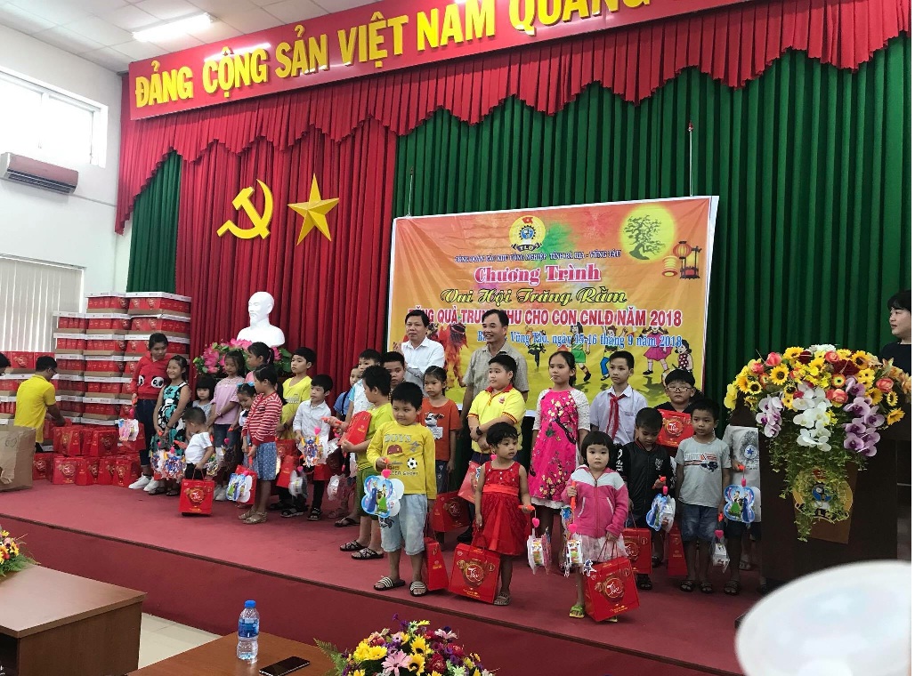 Công đoàn các khu Công nghiệp trao quà Trung thu cho con của Công nhân lao động có hoàn cảnh khó khăn năm 2018